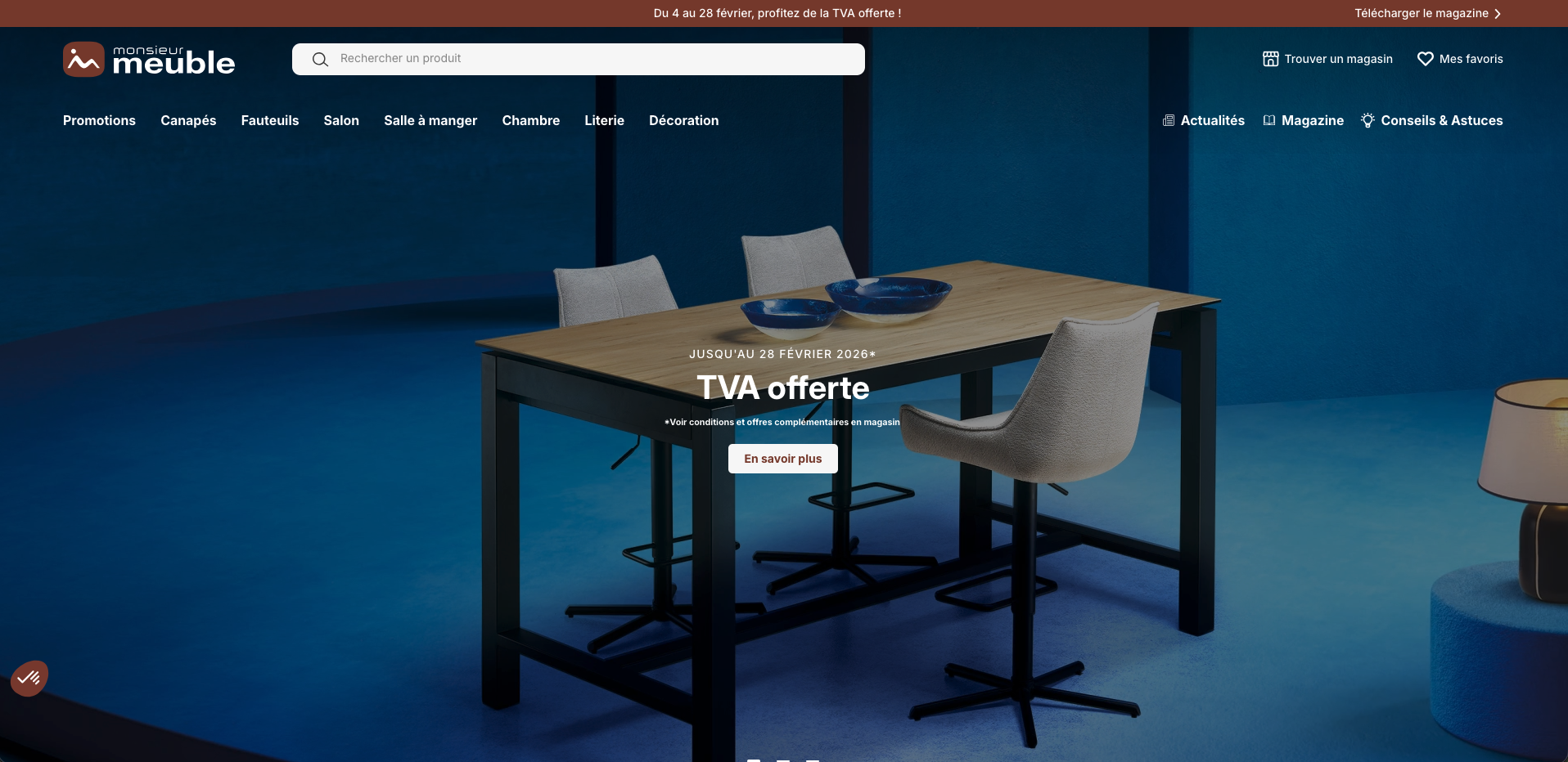 Monsieur Meuble, multi-spécialiste, positionné moyen/haut de gamme, propose des collections contemporaines, tendances, jusqu’au classique revisité.